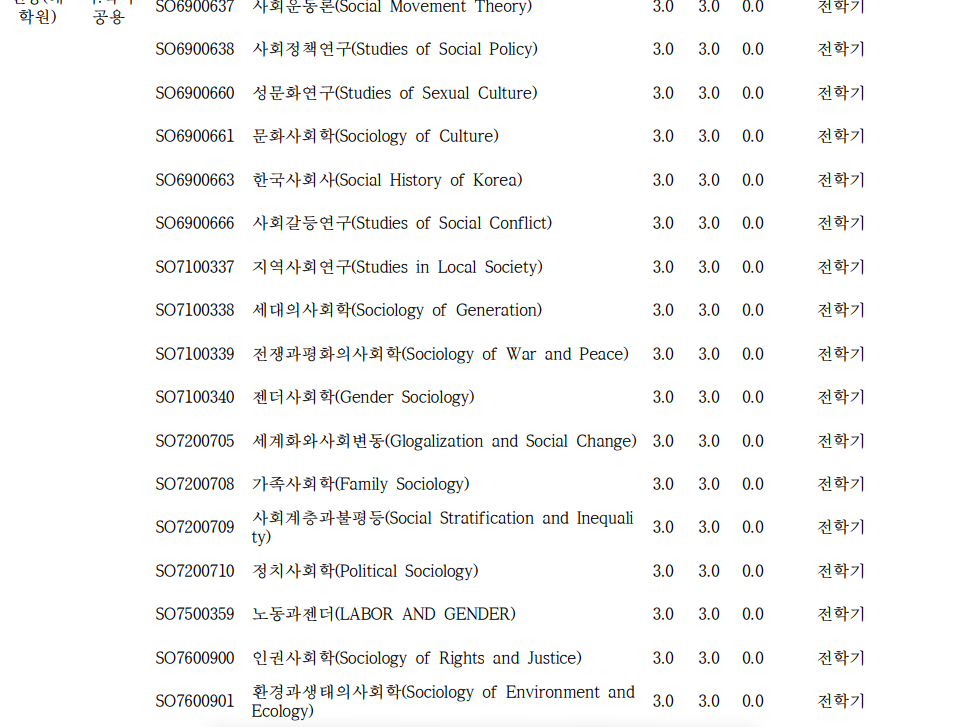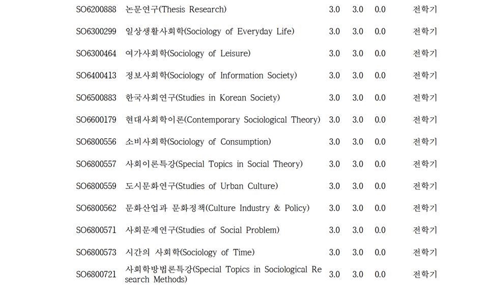 2024 사회학과 대학원 교육과정표