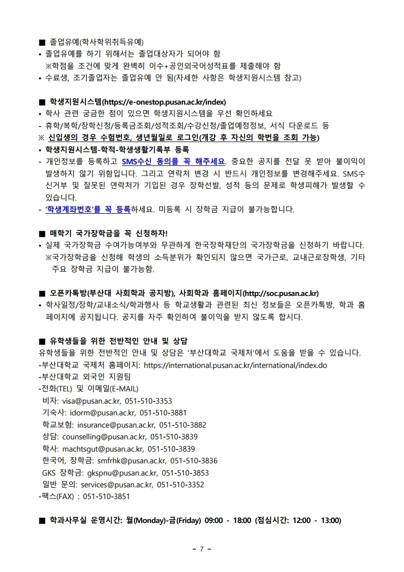 궁금한 점이 있으시면 학과사무실로 방문 또는 연락바랍니다.