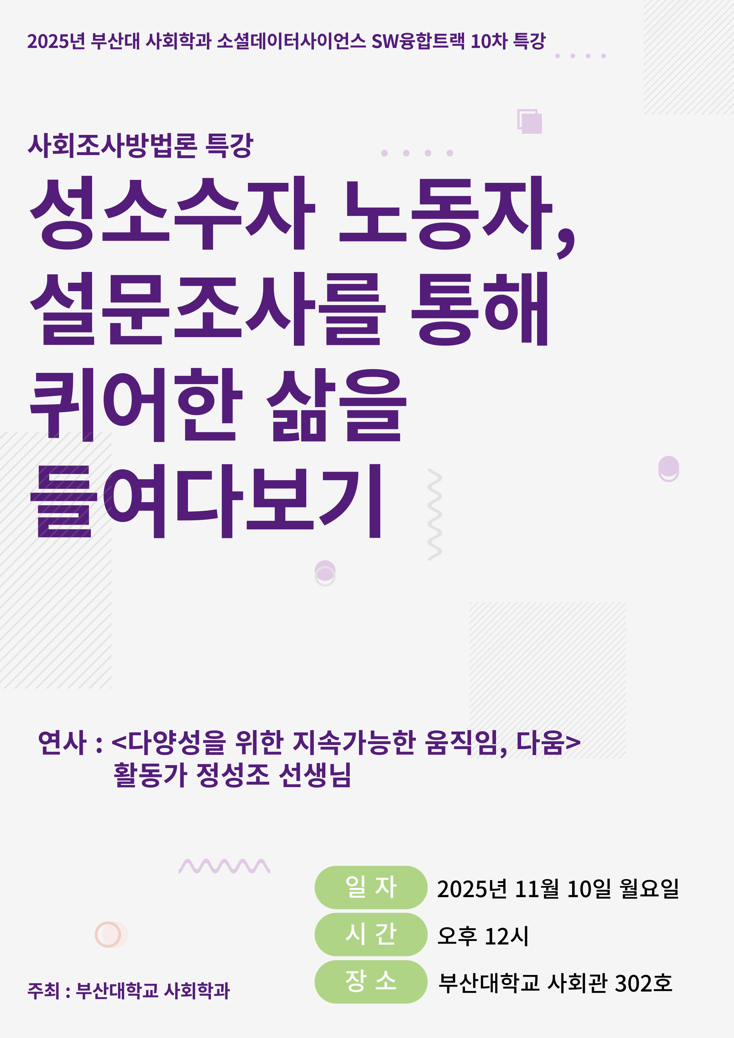 [SW융합트랙] 2025학년도 2학기 SW 10차 특강 "성소수자 노동자, 설문조사를 통해 퀴어한 삶을 들여다보기"