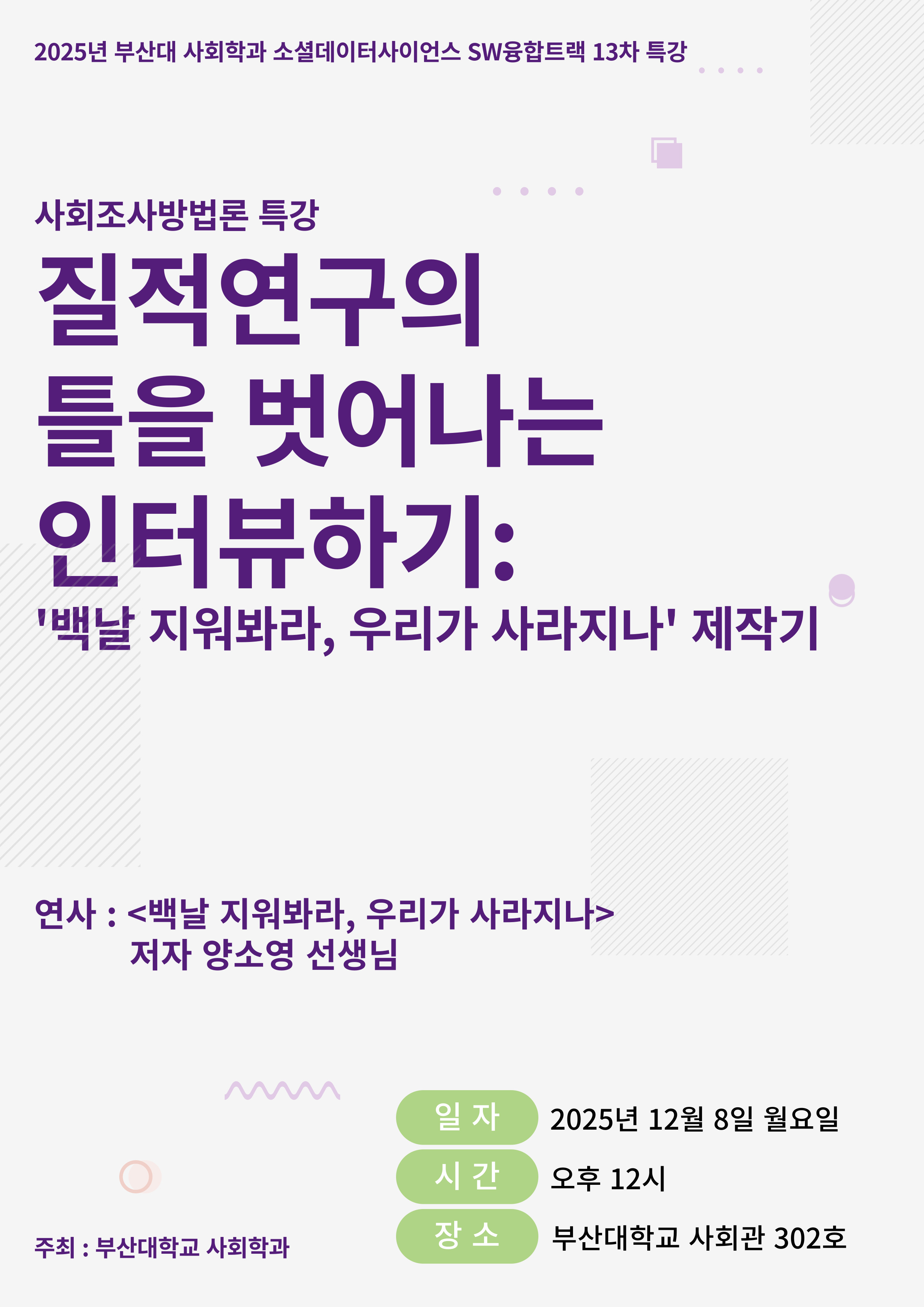 [SW융합트랙] 2025학년도 2학기 SW 13차 특강 "질적연구의 틀을 벗어나는 인터뷰하기: '백날 지워봐라, 우리가 사라지나' 제작기"